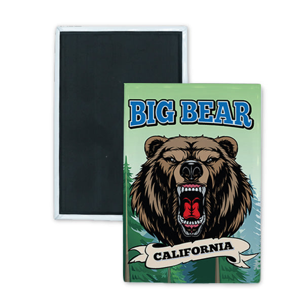 1352-776 Big Bear California Snarling Bear Rectangle Badge Magnet