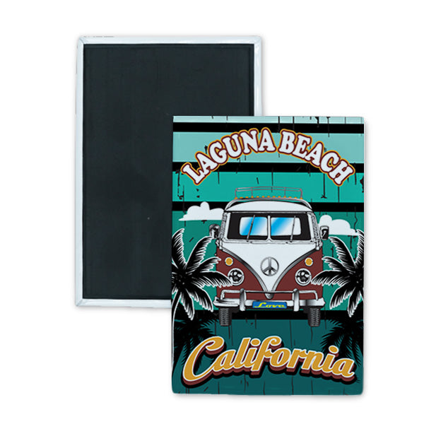 162-123 Laguna Beach California Burgundy Bus Front View Rectangle Badge Magnet