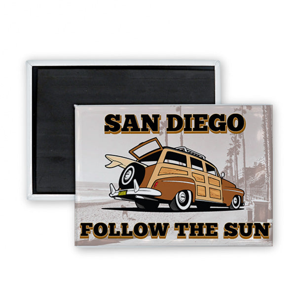 189-189 San Diego Woody Follow the Sun Rectangle Badge Magnet