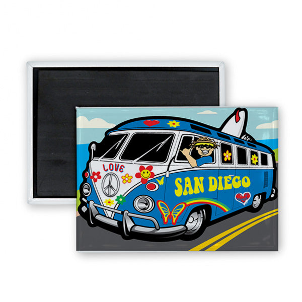 519-189 San Diego Hippie Bus Rectangle Badge Magnet