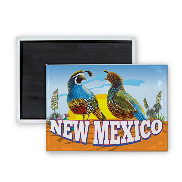 98512-31 New Mexico Quail Desert Scene Rectangle Badge Magnet