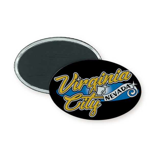 46606-224 Virginia City Nevada Gold Script Black Oval Badge Magnet