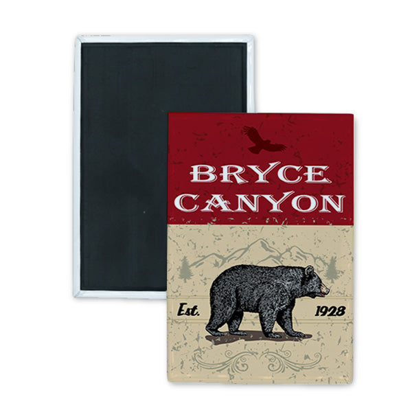 288-690 Bryce Canyon Red Bear Sign Rectangle Badge Magnet