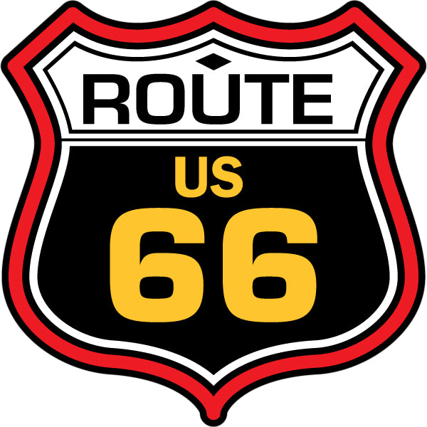 10332-300 Route 66 Route 66 Black Red and White Shield Double Postcard Sized Sticker