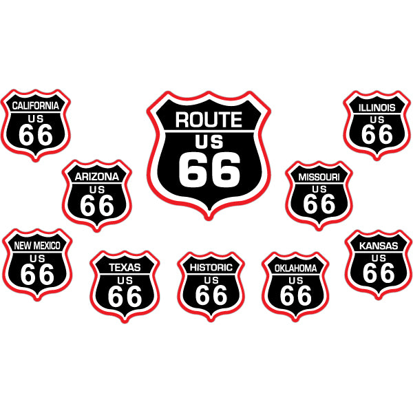 44264-300 Route 66 Black Shields 10 Up Sticker