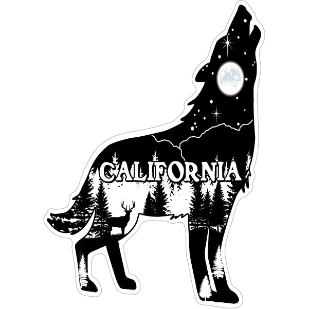 10105-5 California Wolf Howling Mountain Scene Inside Sticker