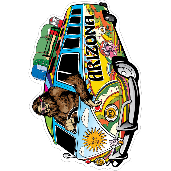 10113-3 Arizona Bigfoot Driving Hippie Van Bus Sticker