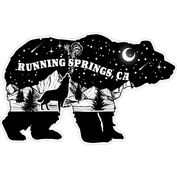 10130-888 Running Springs CA Bear with Mountain Night Scene inside Sticker