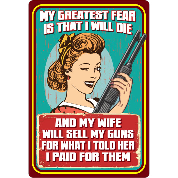 10295-500 Novelty My Greatest Fear My Wife Will Sell Guns Sticker