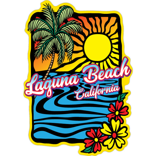 1034-123 Laguna Beach California Abstract Sunset & Flowers Sticker