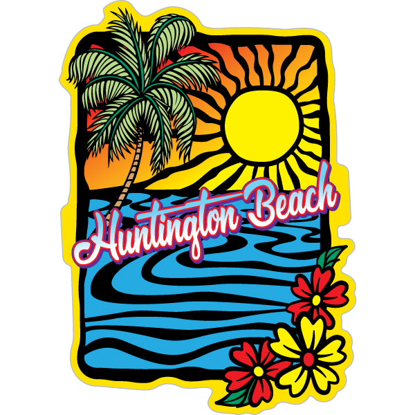 1034-759 Huntington Beach Abstract Sunset & Flowers Sticker