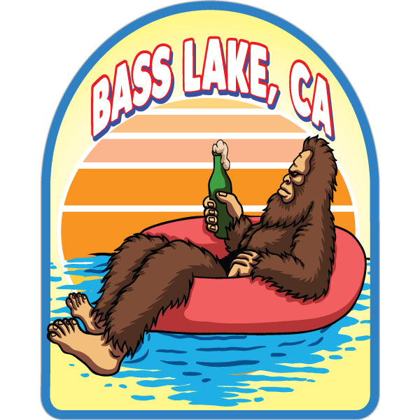 10421-1097 Bass Lake CA Big Foot Inner Tube Drinking Sticker