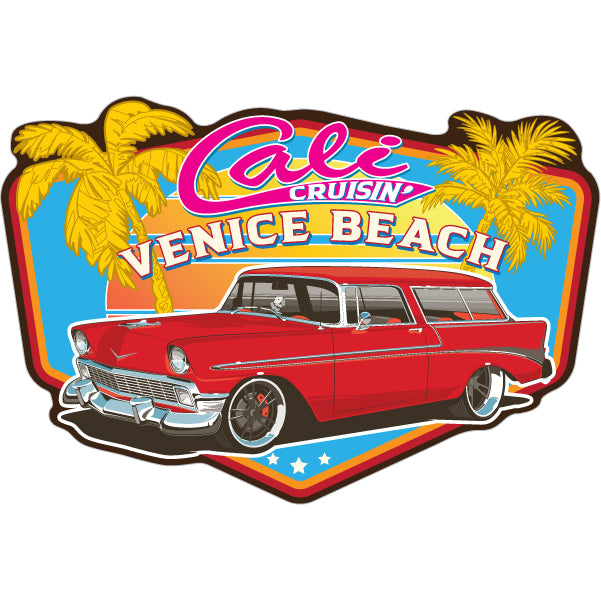 10432-693 Venice Beach Cali Cruisin' Red Car Sticker