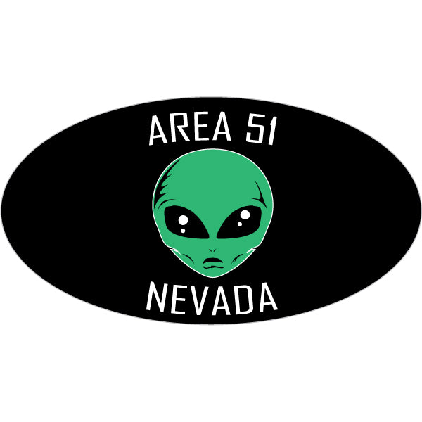 1090-394 Area 51 Alien Head Black Euro Oval Sticker