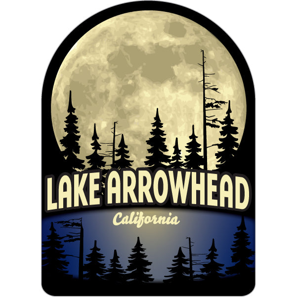 1205-124 Lake Arrowhead California Full Moon Behind Trees Sticker