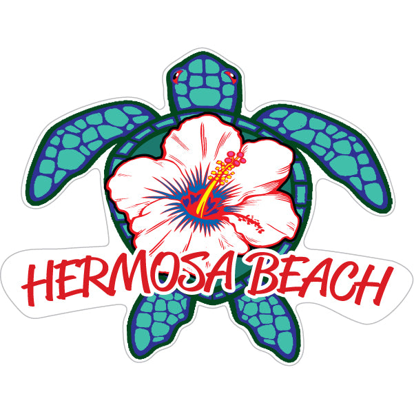121-798 Hermosa Beach Blue Turtle with White Flower Sticker
