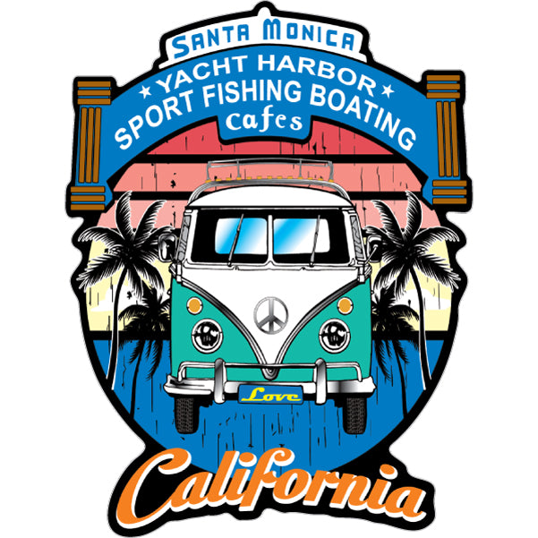 162-198 Santa Monica California Teal Bus Front View On Circle Sticker