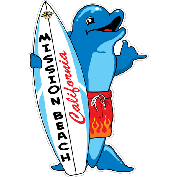 170-145 Mission Beach California Standing Dolphin Surfboard Sticker