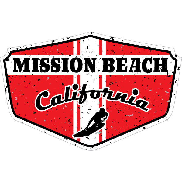 184-145 Mission Beach California Distressed Surfer Shield Sticker