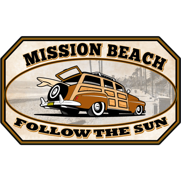 189-515 Mission Beach Woody Follow the sun Sticker