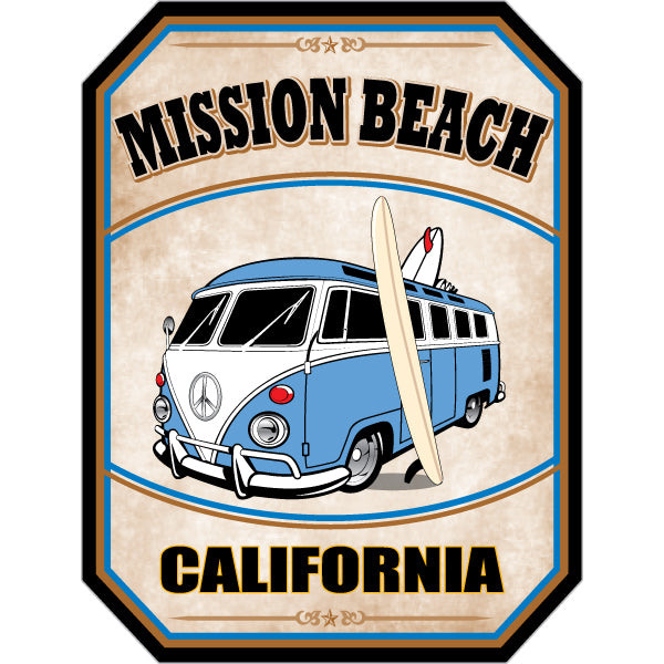 190-145 Mission Beach California Bus Corner View Cut Corner Sticker