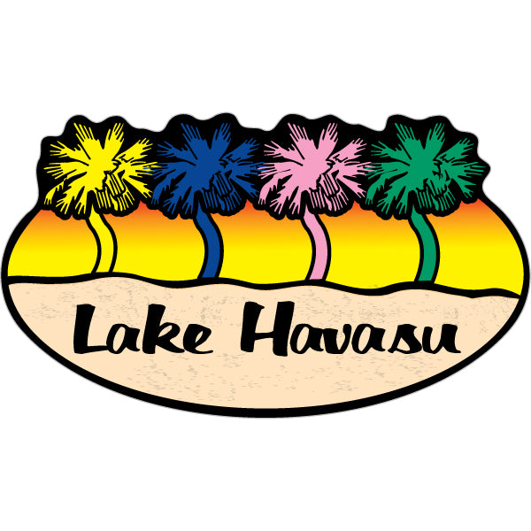 221-1029 Lake Havasu 4 Colored Palm Trees Sticker