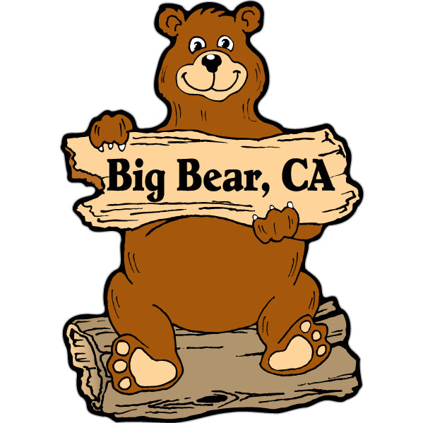 257-680 Big Bear CA Log Bear Holding Sign Sticker