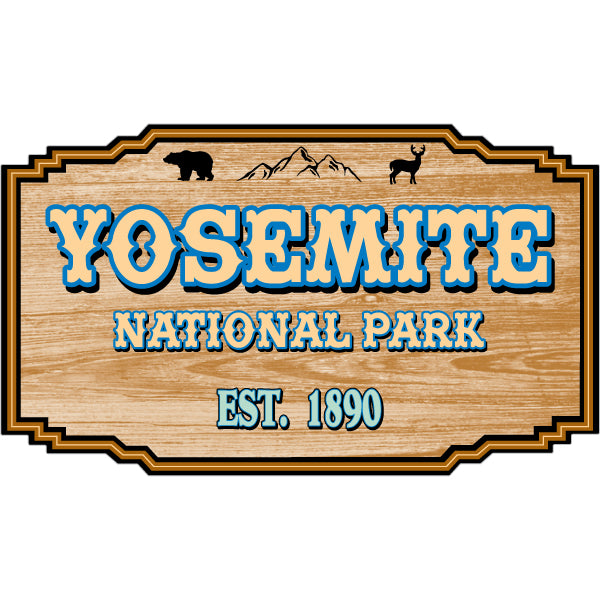 273-586 Yosemite National Park Wood Mountain with Bear Deer & Mountain Sticker