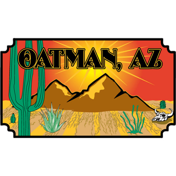34-518 Oatman AZ Cactus With Mountains Cut Corners Sticker