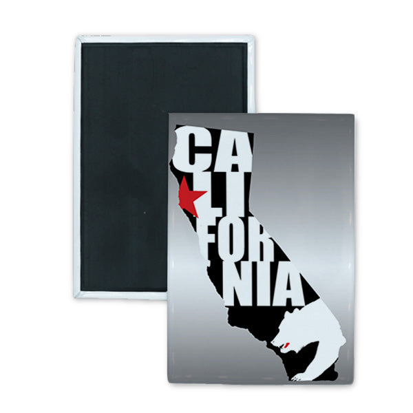 10116-5 California CA LI FOR NIA and Bear in Black State Shaped Silohuette Rectangle Badge Magnet